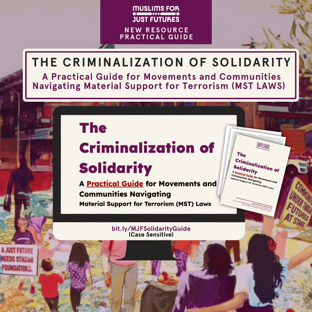 As governments expand counterterrorism laws to suppress activism and dismantle civil society organizations, this first-of-its-kind guide from Muslims for Just Futures provides essential knowledge for movements facing heightened criminalization. This guide on the criminalization of material solidarity builds upon Muslims for Just Futures’ Guide for Grassroots Groups: Fiscal Sponsorship, Bail Funds, and Mutual Aid Basics, with a focused analysis of material support for terrorism laws. MST laws have been used against humanitarian organizations providing medical aid and food, organizers and advocates pushing for accountability for government repression, and criminal defense attorneys. This document provides a strategic analysis of material support for terrorism (“MST”) laws and their impact on movement organizations and communities.