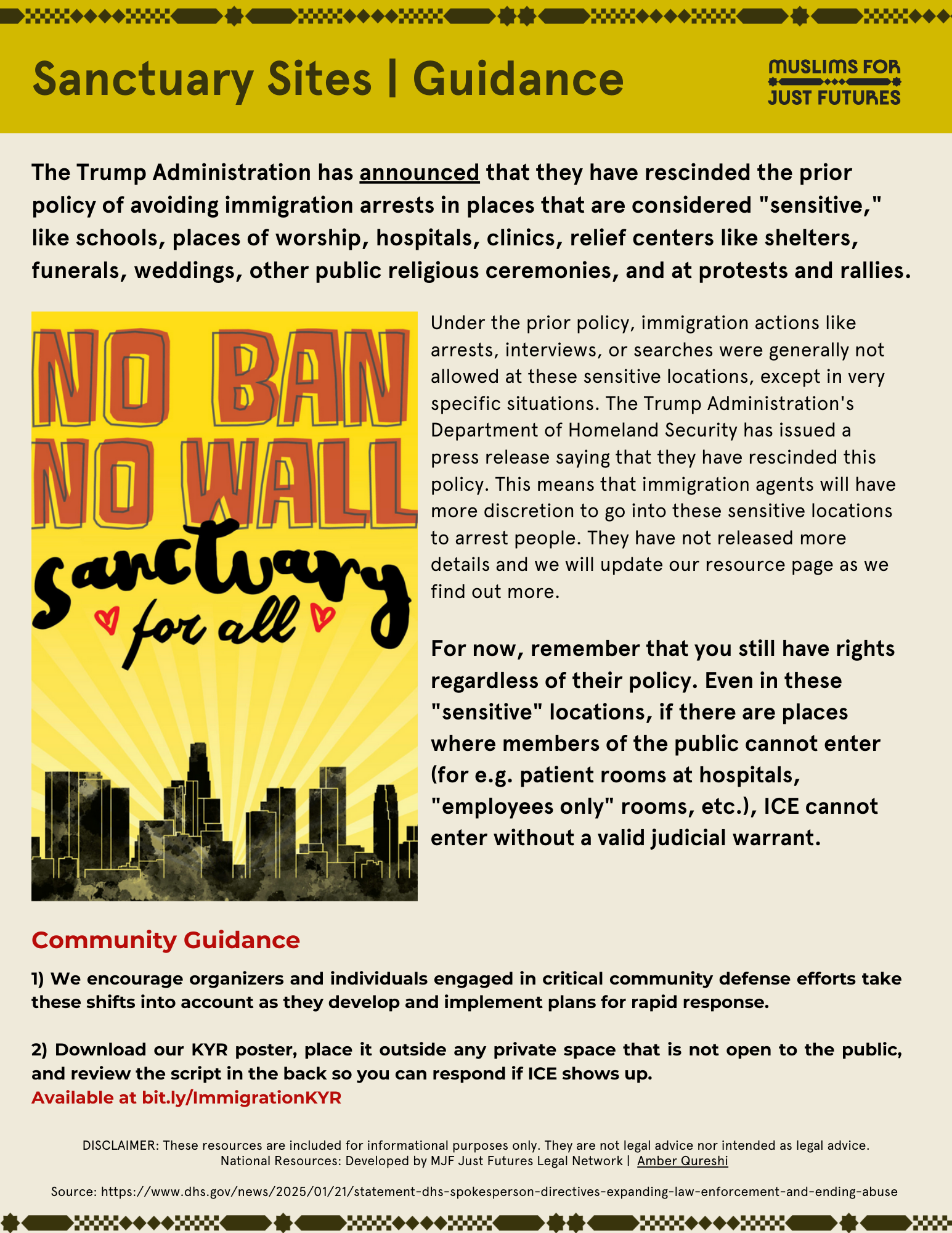 Muslims for Just Futures in collaboration with our MJF Legal Network and partners will be utilizing this page to provide updates on attacks on sanctuary cities and spaces.